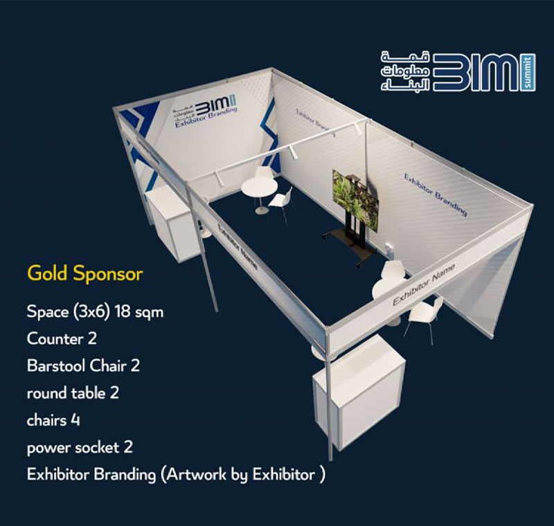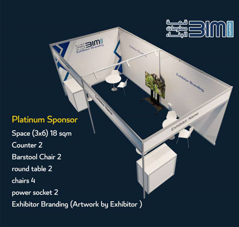 • Strategic exhibition stand (6 m × 3 m) in the front zone